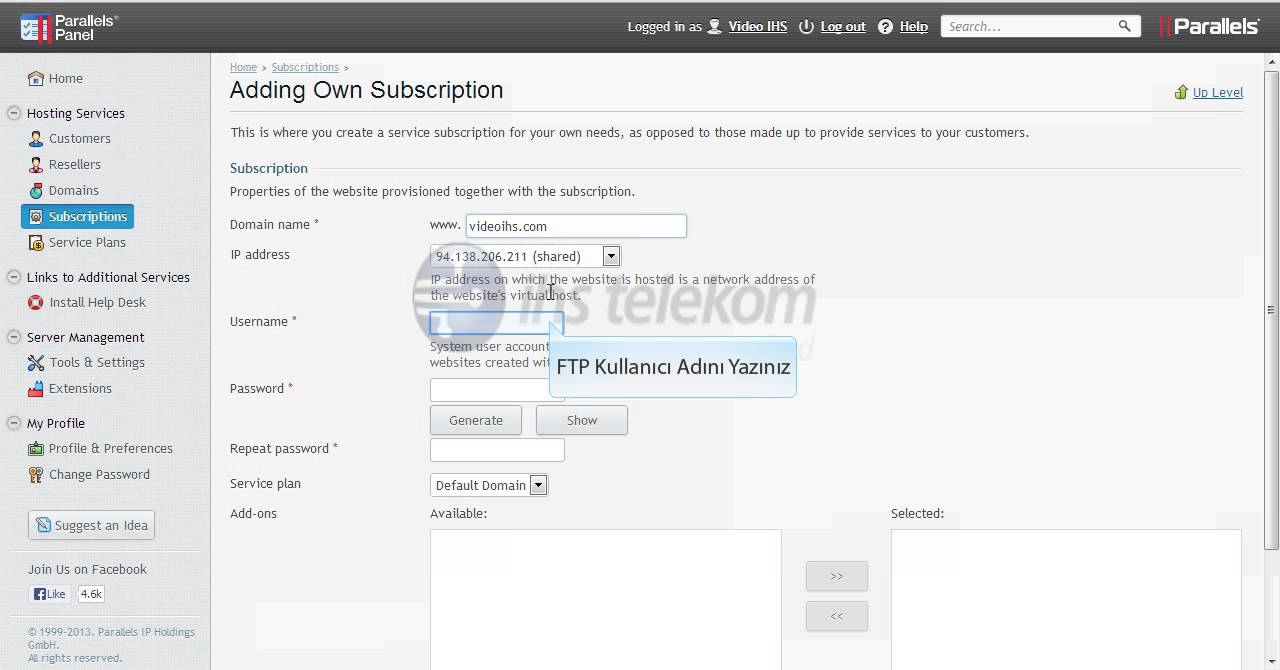 Plesk Yeni Domain Ekleme Ihs Telekom Youtube